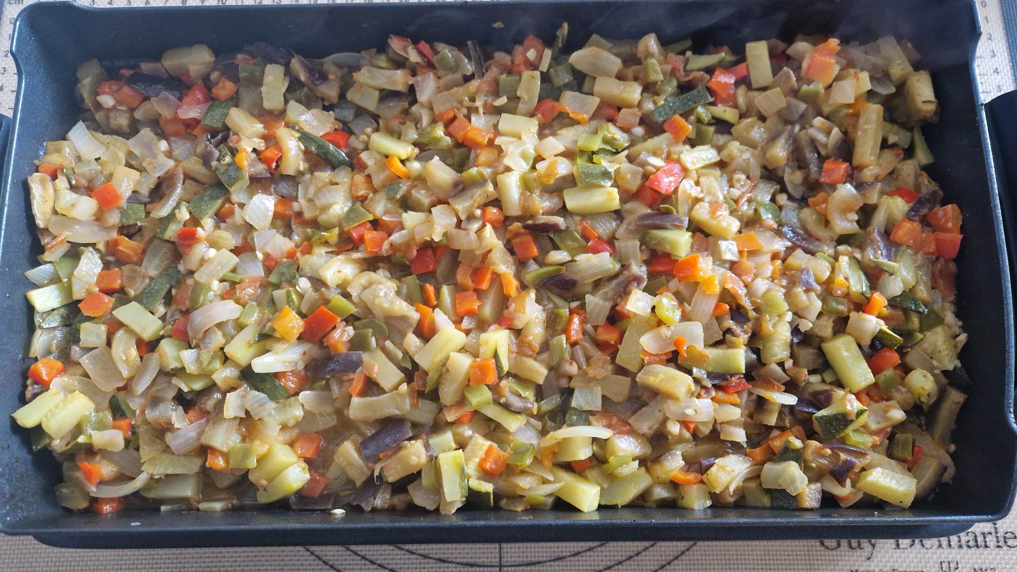 Laver tous les légumes. Couper les courgettes, aubergines et poivrons en rondelles ou en lanières. Couper l’oignon en fines tranches. Dans un saladier, mélanger les légumes avec l’huile d’olive, le sel, le poivre et les herbes de Provence. Étaler sur une plaque de cuisson recouverte de papier sulfurisé. Faire griller au four à 200°C pendant 20-25 min jusqu’à ce que les légumes soient tendres mais encore légèrement croquants. Ajouter les tomates cerises 5 minutes avant la fin pour qu’elles restent juteuses. Servir tiède ou froid, avec un filet de vinaigre balsamique ou un peu de feta émiettée si tu veux.